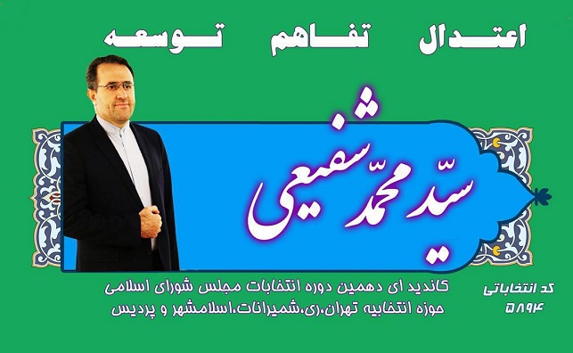 جناب آقای سید محمد شفیعی نیز که در تهران کاندید هستند اگر در تهران دوست و آشنایی دارید لطف کنید اطلاع بدهید تا از جناب آقای شفیعی حمایت کنند زیرا موفقیت ایشان مایه ی سربلندی و افتخار شهرستان طارم میباشد و همچنین برای آقای جعفری از دوستان و آشنایان زنجان کمک بگیرید، آرزوی موفقیت برای هر دو عزیز بزرگوار داریم که افتخارات طارم هستند.