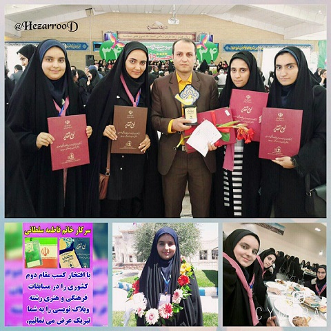 کسب مقام دوم کشوری در مسابقات فرهنگی و هنری در رشته وبلاگ نویسی توسط سر کار خانم فاطمه سلطانی را تبریک عرض می نمائیم.