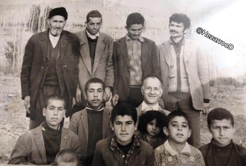 ایستاده از چپ: مرحوم حاج میر حمزه شفیعی، مرحوم مشهدی قاسملی عباسی، کربلایی نقدعلی محمدی و آقای قرهباشلو( فرهنگی مستقر در هزاررود)