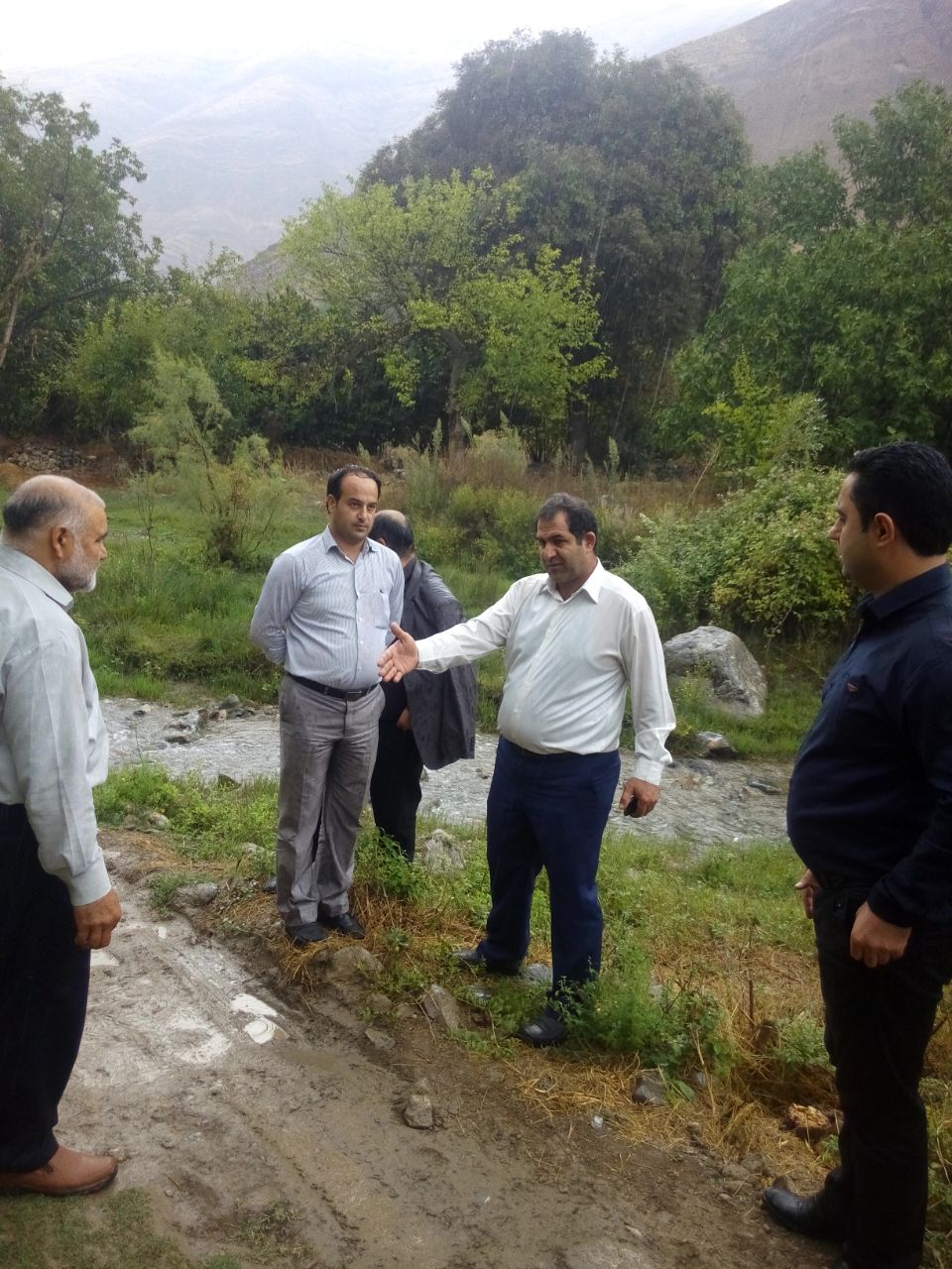 طراح اداره برق آقای مهندس جعفری و دهیار روستا آقای جواد عباسی از روستا بازدید کرده و سپس طراحی تیرهای برق را انجام داده اند.